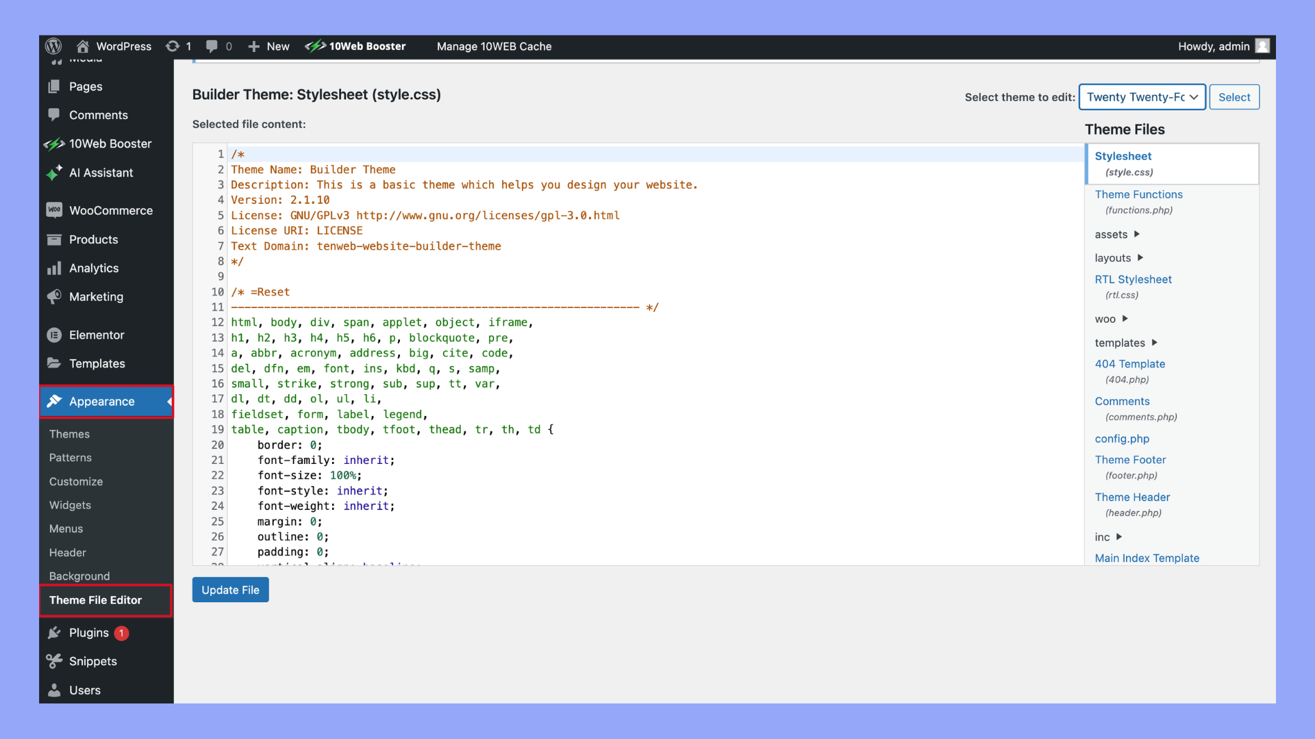 - Ir a Apariencia > Editor de temas en tu panel de WordPress.