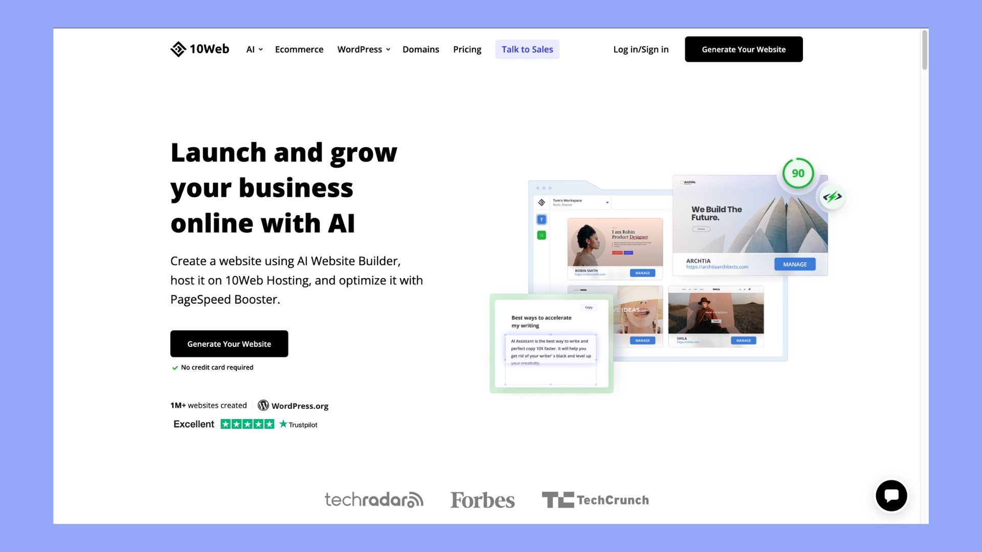Try 10Web for free, and enjoy all the benefits of a secure Google Cloud Partner hosting and 10Web's AI Website Builder.