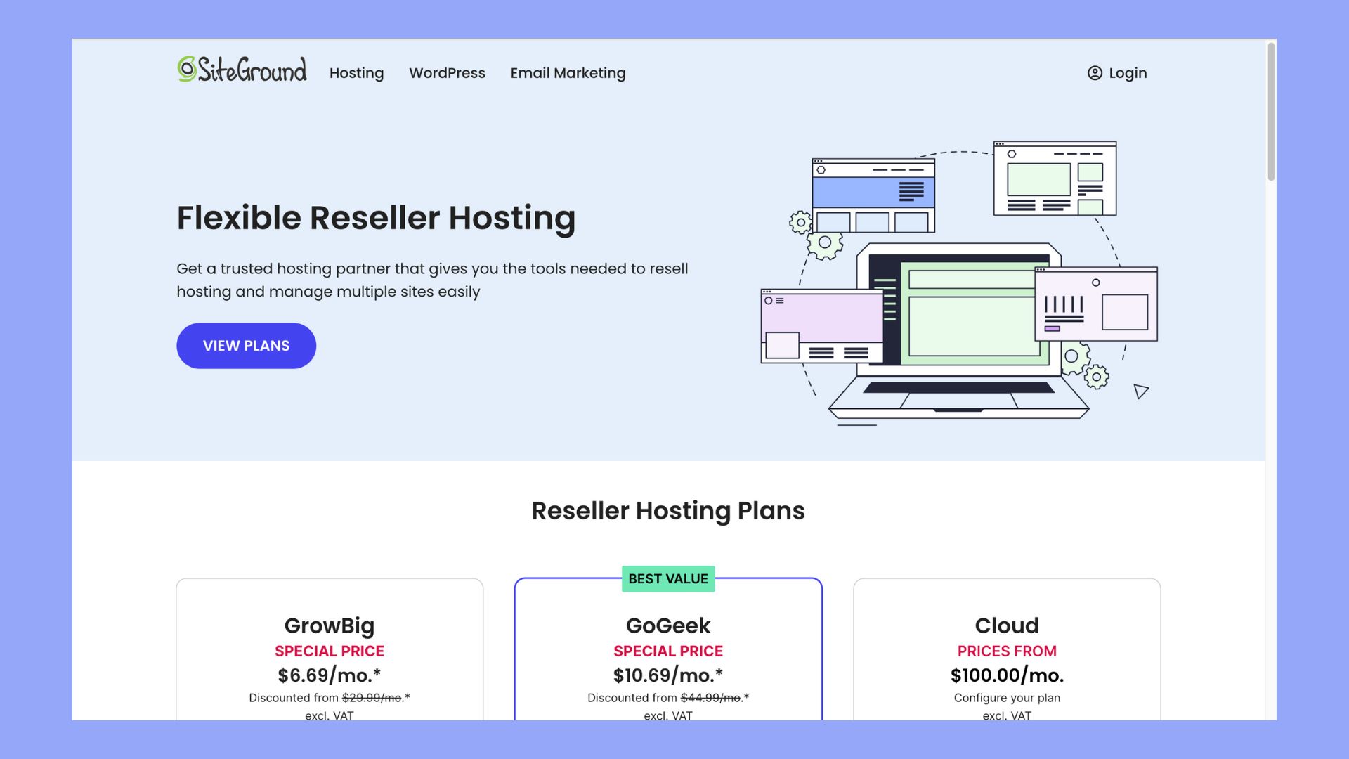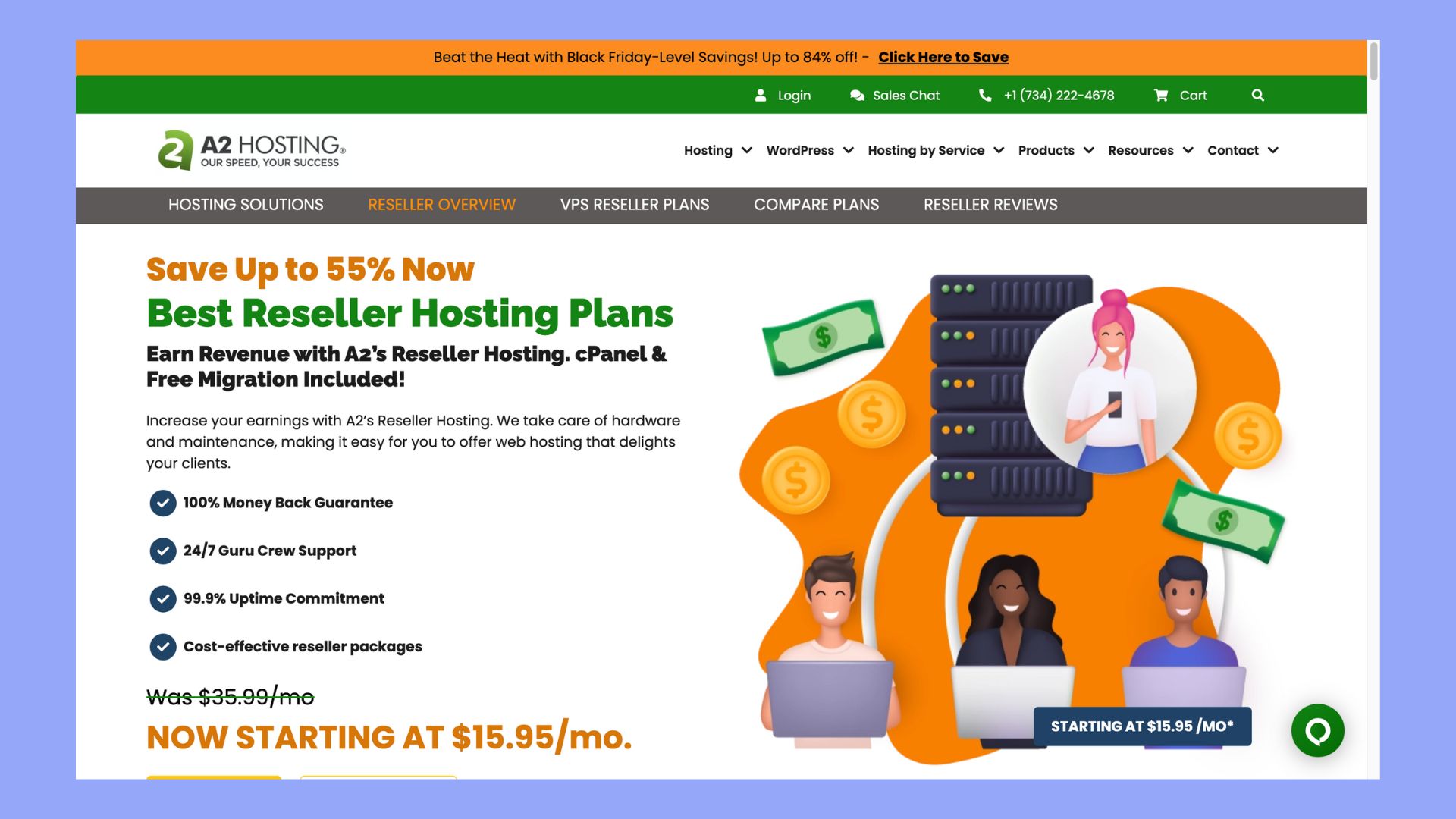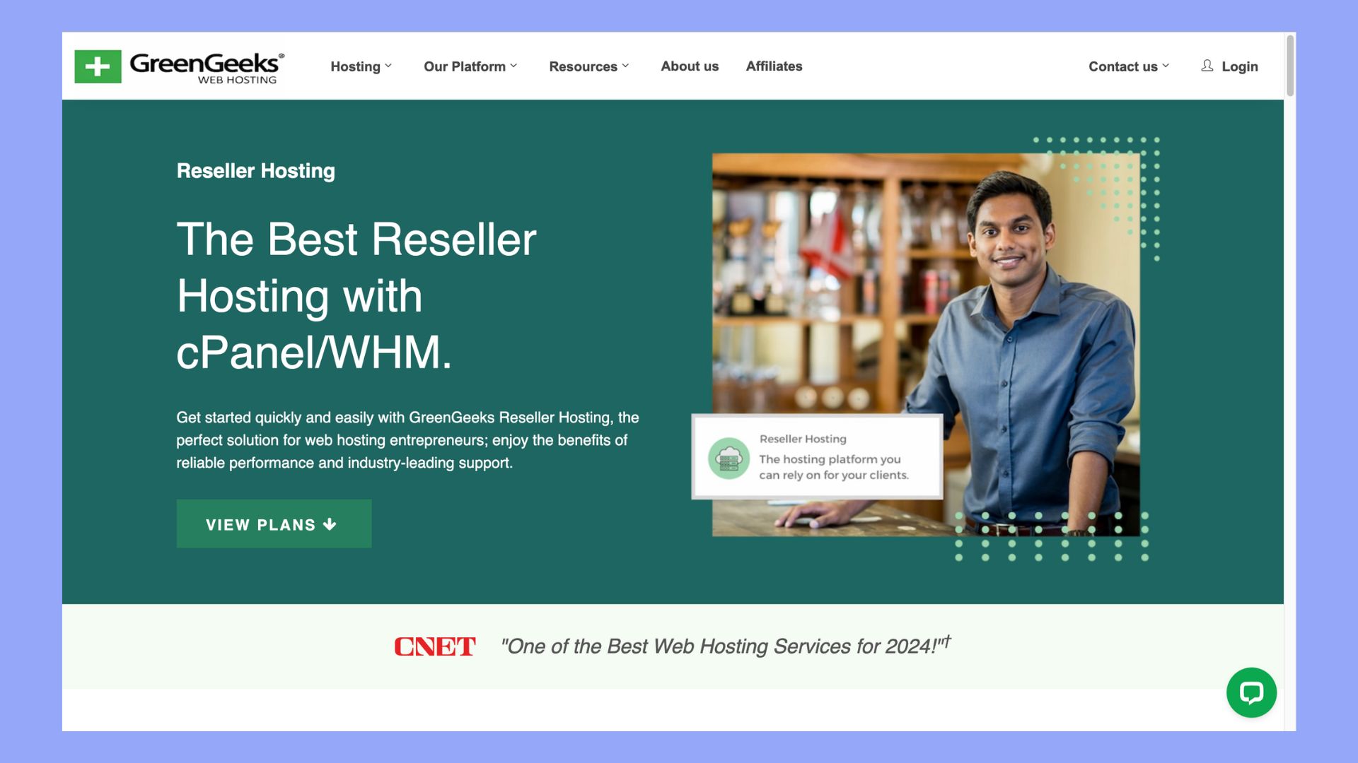 La combinación de asequibilidad y prestaciones hace que esta plataforma destaque en el alojamiento para revendedores de WordPress. Herramientas como WHM y WHMCS agilizan la gestión de clientes y la facturación, facilitando la ampliación de un negocio de alojamiento. La gran reputación de fiabilidad de la plataforma, su sólido servicio de atención al cliente y sus planes repletos de prestaciones la convierten en la mejor opción para los revendedores que buscan una solución completa.