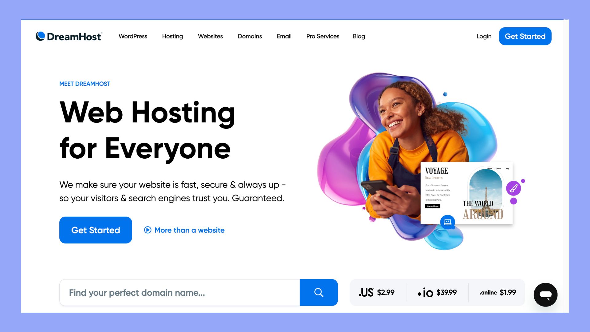 DreamHost es un proveedor de alojamiento web que ofrece una amplia gama de servicios, como alojamiento compartido, VPS, dedicado y en la nube. Conocido por su flexibilidad, permite a los usuarios revender servicios de alojamiento gestionando sitios web de varios clientes, incluso sin un programa de revendedores dedicado. La empresa hace hincapié en el rendimiento, la fiabilidad y la sostenibilidad, lo que la convierte en una opción sólida para particulares y empresas que deseen iniciar sus propias empresas de alojamiento.
