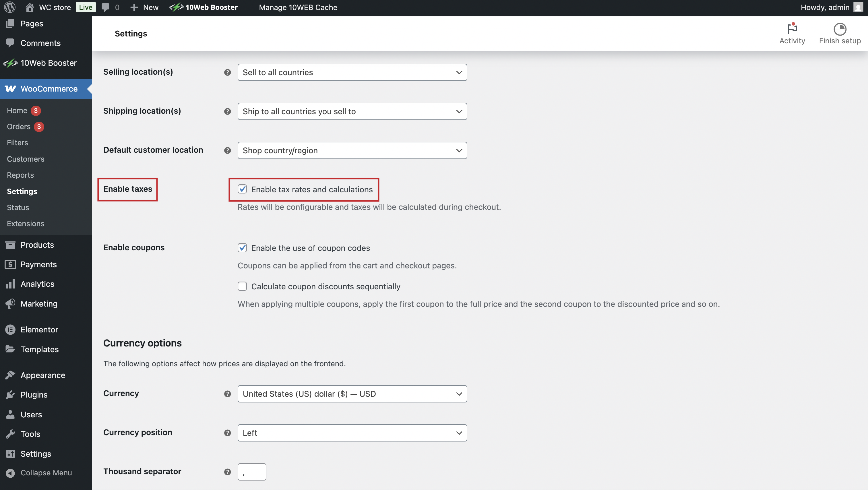 For US-based stores, use a plugin like TaxJar to automate sales tax calculations. For international stores, set up tax rates for each country or region manually under WooCommerce > Settings > Tax. If you can’t find the Tax page, you probably didn’t enable tax rates and calculations from General settings. Make sure the box is ticked:
