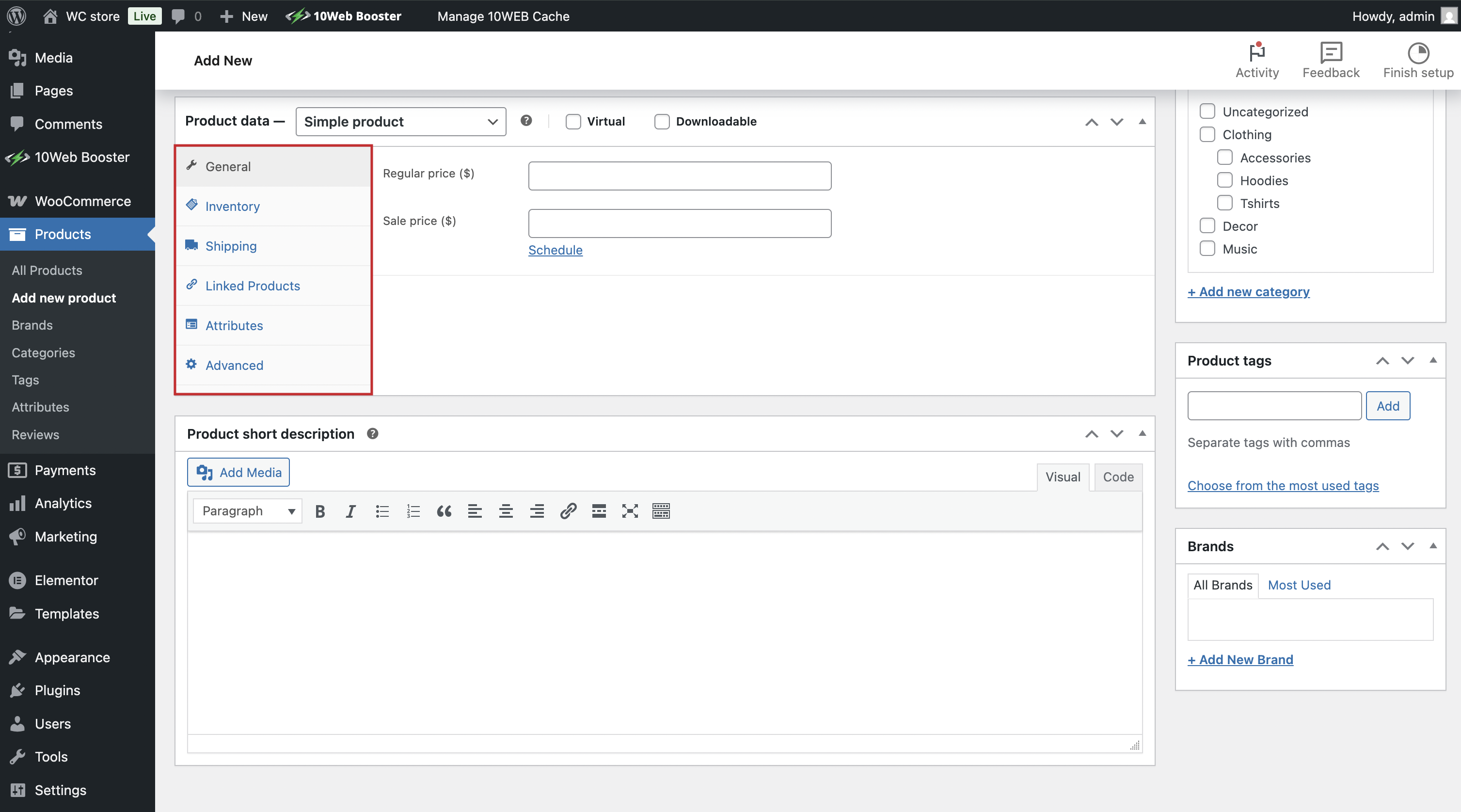 In the same panel you can specify product-related details such as General, Inventory, Shipping, Linked Products, Attributes, Advances.