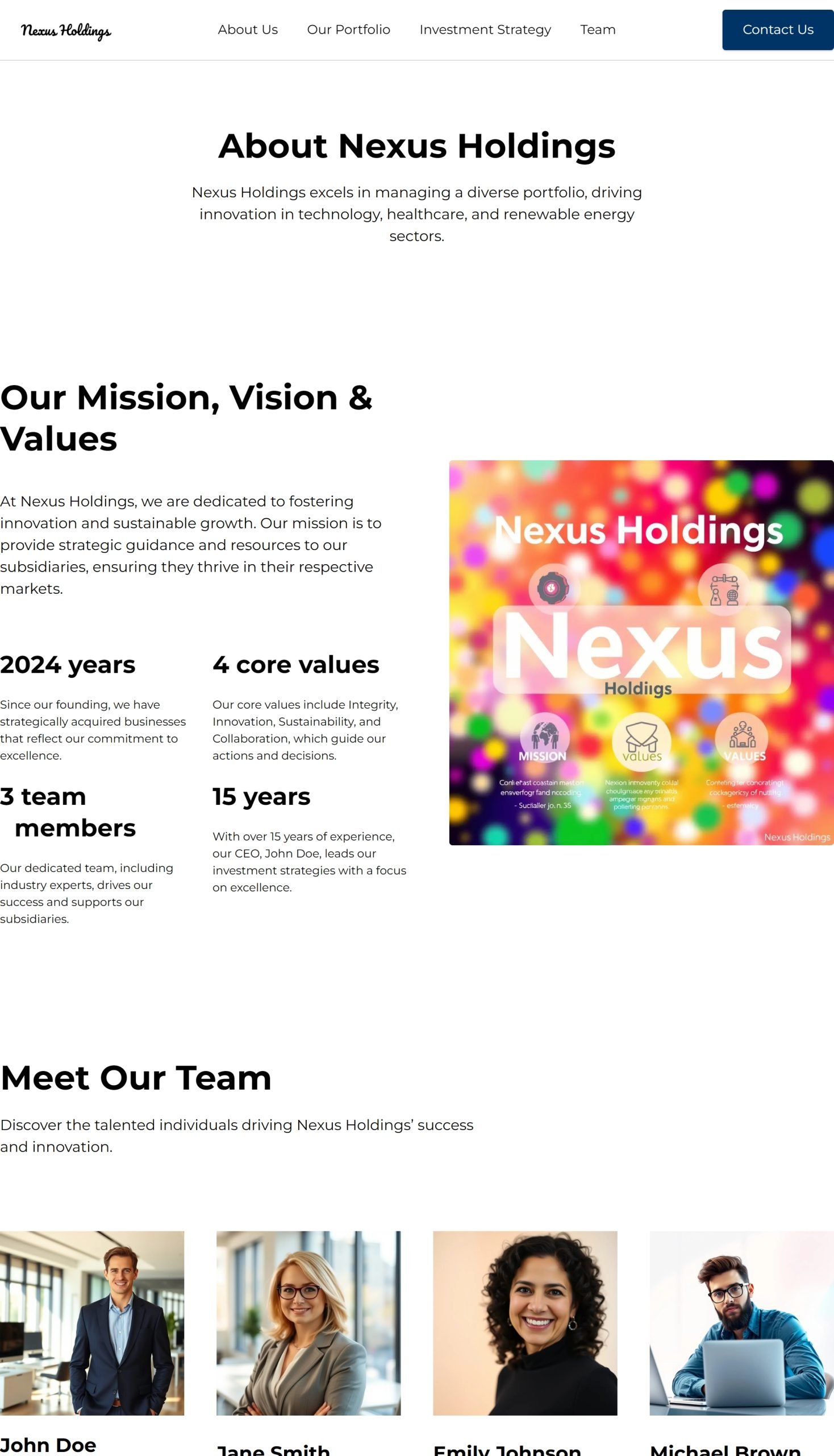 Streamline your holding company's digital footprint with a robust, professional template designed to highlight your portfolio, facilitate investor relations, and showcase your corporate governance with clarity and impact.